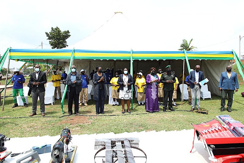In this graduation ceremony, various toolkits were distributed to the beneficiaries. Other authorities who participated in this event included: The Governor of the Southern Province KAYITESI Alice, Chairperson of RDRC NYIRAHABINEZA Valerie, The Mayor of Huye District SEBUTEGE Ange, The Representative of UN Branches in Rwanda, etc.